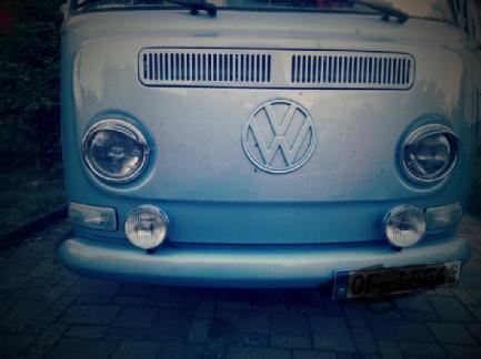 Felgen: 7J16 ET33 vom Mercedes W211 (Mercededs Teilenummer A211 401 102), von Hand entlackt und poliert, die Aussparungen farblich ausgelegt. Zu beachten ist, dass die Radbolzen aufgrund der Materialstärke gerade so für die notwendige Einschraubtiefe reichen. Zur Abdeckung der Naben passen leider keine normalen 66mm Nabendeckel, da die Naben am Bulli zu weit nach außen ragen. Die Lösung sind Deckel in 'Zentralverschlussoptik', die es für 15.-€ pro Satz auf eBay gibt. Hier habe ich den Mercedesstern aus dem Chromring entfernt und die Deckel ebenso lackiert wie die Aussparungen der Felgen.